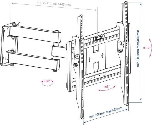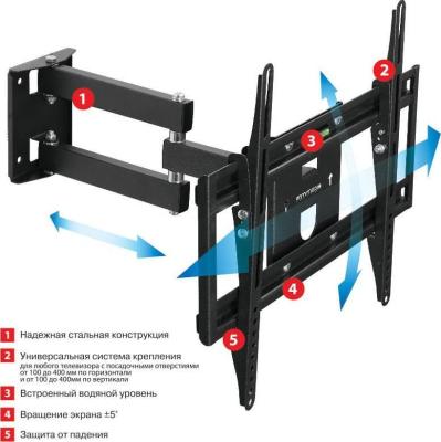 Модель совместима с девайсами весом до 40 килограмм и обладающими диагональю от 32 до 55 дюймов. Установленное в пазы устройство можно будет наклонять в пределах +5°/-18° и поворачивать на 180°.