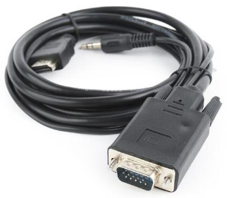 Кабель HDMI-VGA Cablexpert, 19M/15M + 3.5Jack, 1.8м, черный, позол.разъемы, пакет