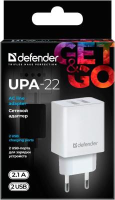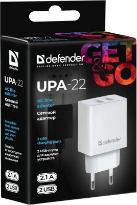 Сетевой адаптер Defender UPA-22 белый, 2xUSB, 2.1А
