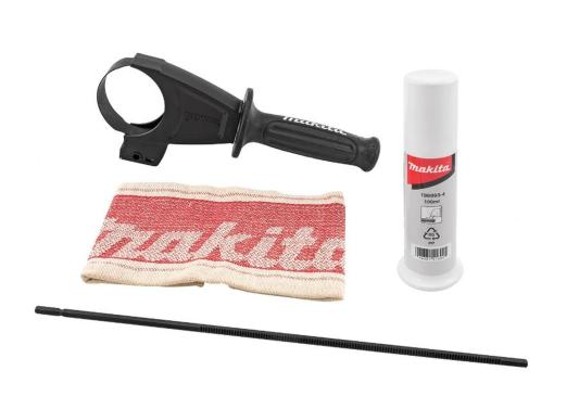 Приспособления: дополнительная рукоятка, ограничитель глубины сверления, блокировка кнопки включения, упаковка смазки в комплекте