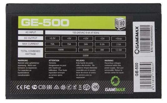 Максимальная нагрузка (сила тока по линиям) +3.3V - 15A, +5V - 15A, +12V - 34A, +5VSB - 2.5A, -12V - 0.5A; Комбинированная нагрузка: +3.3V&+5V - 100 Вт