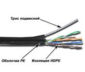 SkyNet Кабель FTP outdoor 4x2x0,51 на тросу, медный, FLUKE TEST, кат.5e, однож., 305 м [CSP-FTP-4-CU-OUTR]