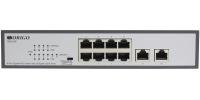 Unmanaged Switch 8x1000Base-T PoE, 2x1000Base-T, PoE Budget 120W, Long-range PoE up to 250m, 19" w/brackets
