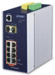 IP30 Industrial L2/L4 8-Port 10/100/1000T 802.3at PoE + 2-Port 10/100/100T + 2-Port 100/1000X SFP Managed Switch (-40~75 degrees C), dual redundant power input on 48~56VDC terminal block, SNMPv3, 802.1Q VLAN, IGMP Snooping, SSL, SSH, ACL