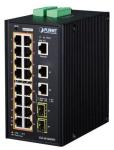 IP30 Industrial L2+/L4 16-Port 1000T 802.3at PoE+ 2-Port 1000T + 2-port 100/1000X SFP Full Managed Switch (-40 to 75 C, dual redundant power input on 48~56VDC terminal block, DIDO, ERPS Ring Supported, 1588)