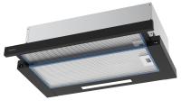наклонная вытяжка, 60 см, механический контроль, черные кнопки,3 скорости работы, производительность 900 м3/ч, LED освещение, черный, металл, стекло,595х294x360 мм