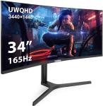 Монитор изогнутый игровой 165 Гц 34" ExeGate Combat EC3400TA (VA Curved R1800 LED Grade A+, UltraWide QHD 3440x1440@165Гц, 21:9, 300cd/m2, 4000:1, 178°/178°, 1ms, 2xHDMI2.0, 2xDisplayPort, audio-out, RGB-подсветка, Flicker-free, FreeSync, Low Blue Light, кабель DP 1.5м, VESA 100x100, регулировка высоты (HAS), регулировка наклона (tilt), поворот экрана (swivel), черный)