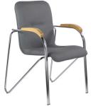 Кресло BRABIX "Samba CF-103", хром каркас, накладки "бук", кожзам серый, собрано, 532758