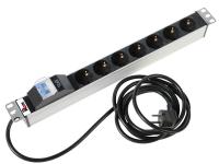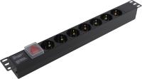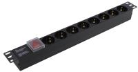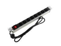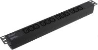Cabeus PDU-8P Блок евророзеток для 19" шкафов, горизонтальный, 8 розеток, 10 A, выключатель, гнездо под шнур, алюминиевый корпус