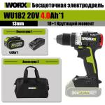 WORX Professional Дрель-шуруповерт аккумуляторный WU182, бесщеточный 20В, 60Нм, 2Ач х2, ЗУ 2 Ач, сумка WU182