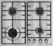 Встраиваемая варочная панель/ Варочная поверхность, газовая BHGI610391, 4 газовых конфороки (1х5,3см,2х7,3cм, 1х9,8см), ЧУГУННЫЕ РЕШЕТКИ, автоподжиг, газ-контроль, нержавеющая сталь