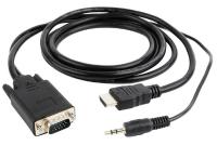 Кабель HDMI-VGA Cablexpert, 19M/15M + 3.5Jack, 1.8м, черный, позол.разъемы, пакет