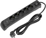 KRANZ Сетевой фильтр 5 гнезд, 3м, 3x1,5мм?, с автовыкл, 2 USB, черный 13-4702
