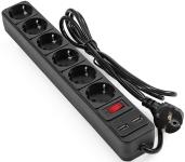 Сетевой фильтр-удлинитель с USB зарядкой ExeGate SP-6-USB-1.8B (6 евророзеток с заземлением, 2 USB-A 2A, 1.8м, защита от перегрузки, выключатель с подсветкой, черный)